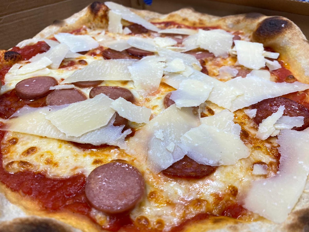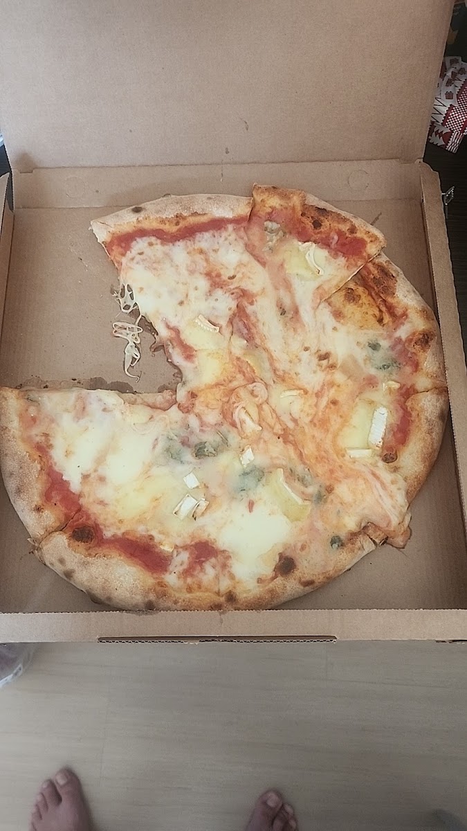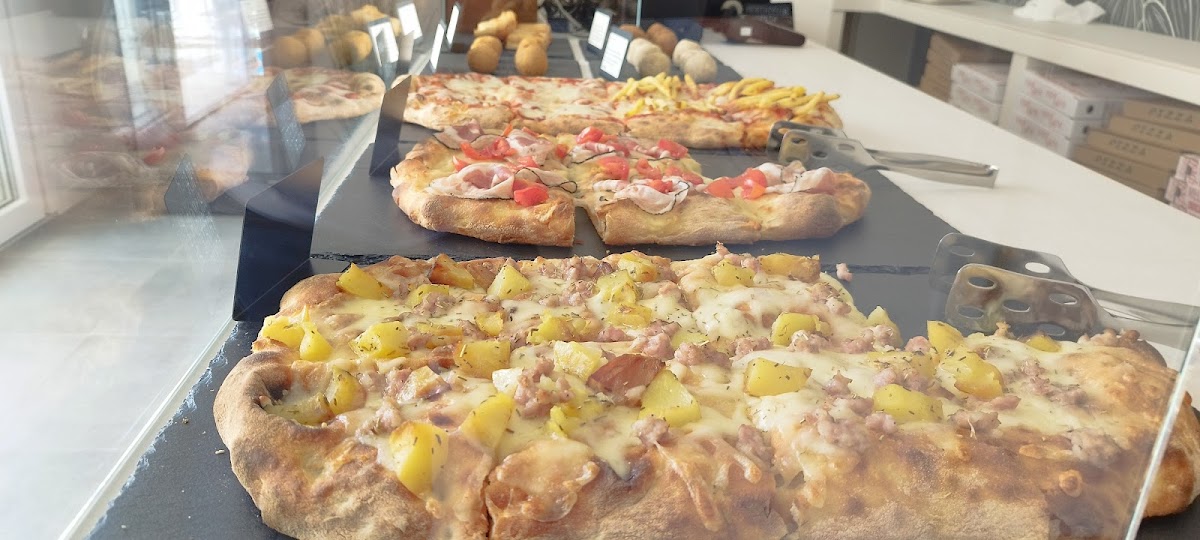 Pizza ottima e facilmente digeribile. Ingredienti buoni e abbondanti sulla pizza. Noi abbiamo preso la pizza tonda, ma offrono anche pizza alla pala e tranci. Possibilità di comporre la proprio pizza a piacimento con aggiunta degli ingredienti che si vogliono (prezzi variano da 1 a 2.50 euro per ogni aggiunta) su base margherita o marinara. Un po' più "fuori dal centro", ma una tappa assolutamente consigliatissima. La pizza migliore mangiata ad Eraclea Mare.